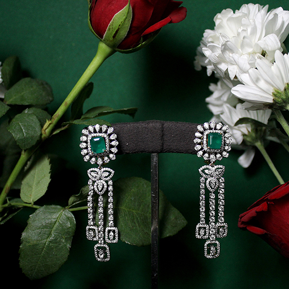 Different cuts and patterns in diamond accompanied with Zambian emeralds, make this pair of earrings modern in every way