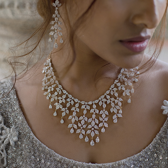 A breezy diamond necklace replicating a vine is a natural beauty that will bring out the glow in your skin and the sparkle in your eyes