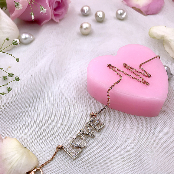 A necklace that speaks volumes of the love you have. Made in gold and studded with diamonds