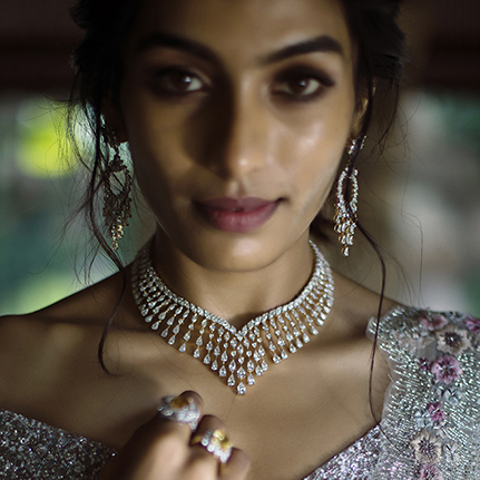 Delicate drops of diamonds in a classic design that gracefully adorns your gliding form